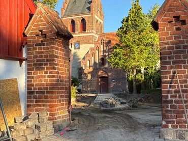 Det betyder, at der endnu engang vil blive arbejdet med belægningen fra portalen og op til kirken. Vi håber på forståelse, når arbejdet begynder mandag den 8. september 2025 og et par måneder frem.